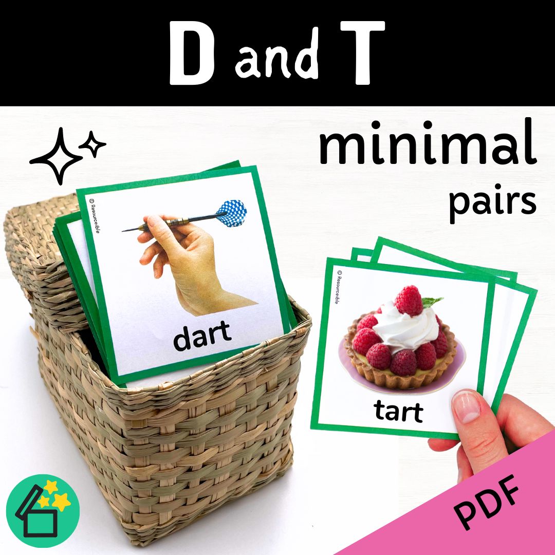 Set of 5 minimal pairs D and T flash cards. Instant PDF download with game ideas included!